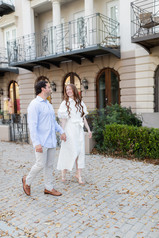 We started the afternoon at It’s Heavenly! right in Seaside Square, coffee in hand and no real agenda other than to simply enjoy being together. I always tell my couples that engagement sessions are less about posing and more about presence. Sitting across from each other, laughing over iced coffees, talking about wedding plans it gives me space to watch how they naturally interact.